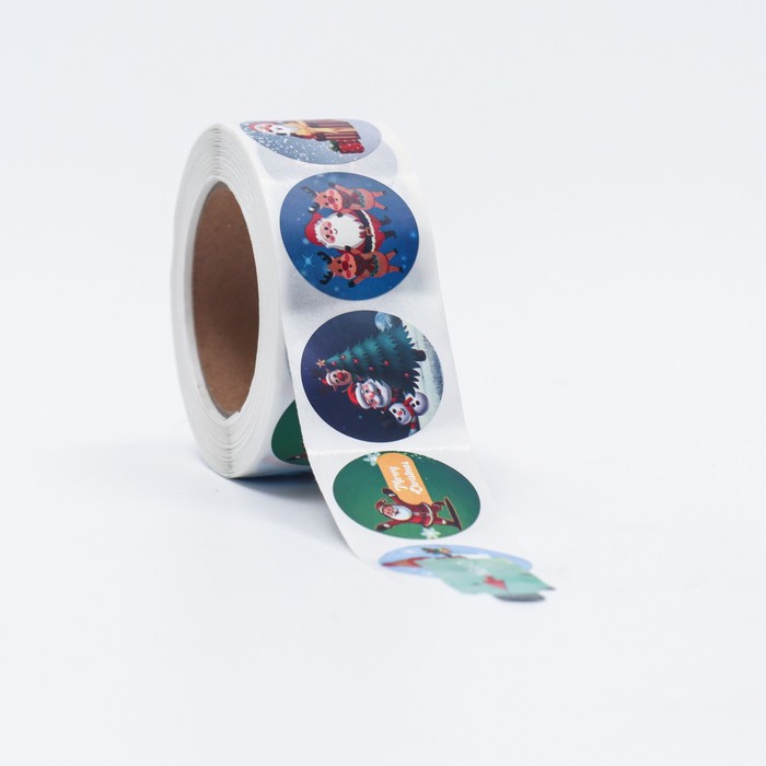 - Наклейки в рулоне "Зимние забавы" 500 шт 2,5 х 2,5 см
