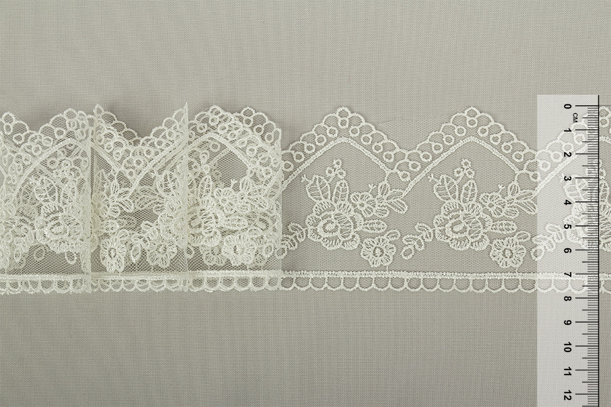 Кружево на сетке представляет собой кружевное полотно, основа которого сетка или фатин. Применяется для декоративной отделки лёгкой женской одежды и домашнего текстиля.В упаковке: 8.8 метров