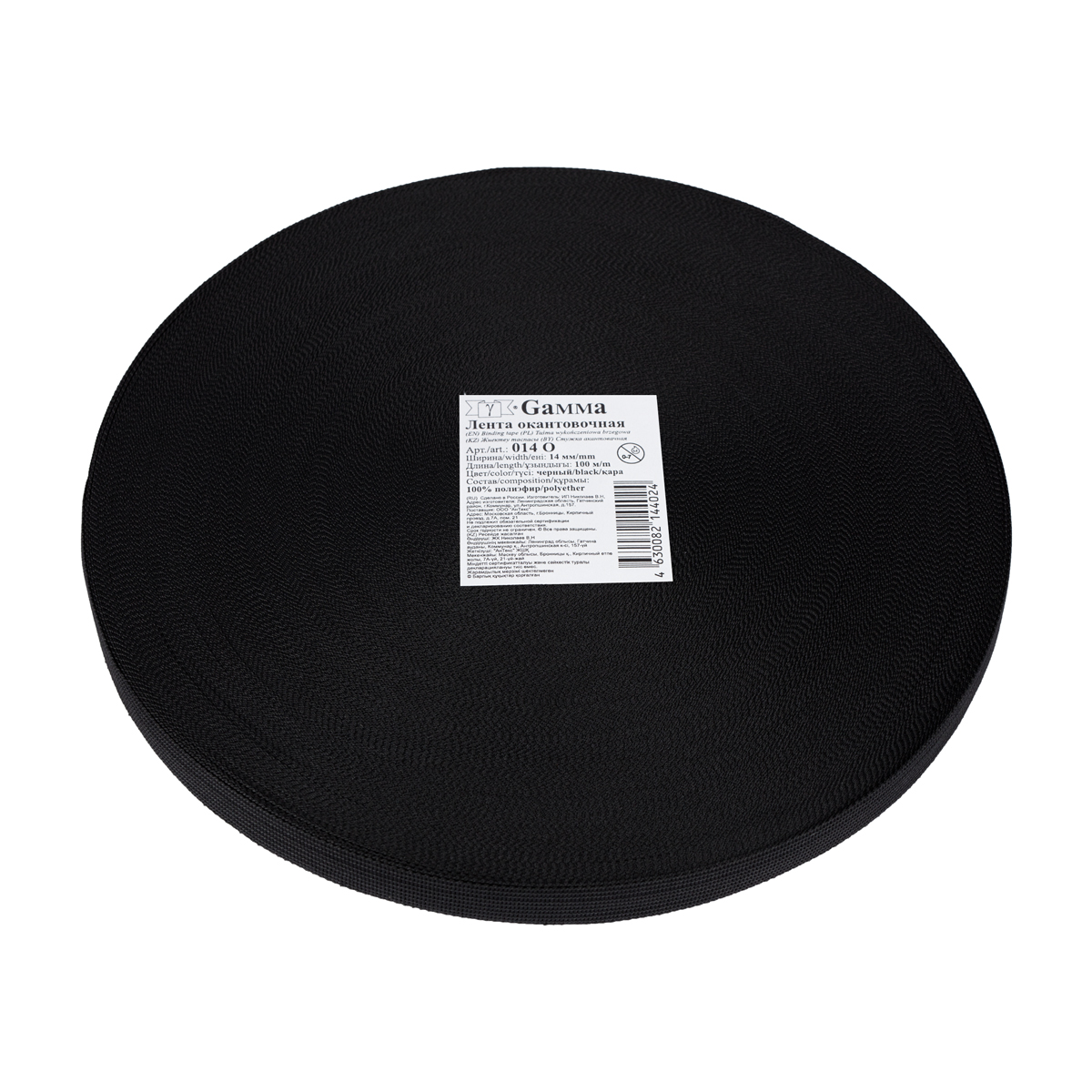 Лента окантовочная 14 мм 014 О ЧЕРНЫЙ "Gamma" 100% полиэфир 100 м