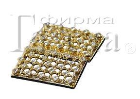 Декоративная застёжка с крючком, состоит из 2-х прямоугольных частей, на которых расположены стразы. Для фиксации застёжки на изделии, на каждой из детали, имеется по 4 отверстия. Пришивная застёжка. Используется для украшения одежды, сумок и т. д.