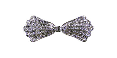 Декоративная застёжка с крючком, состоит из 2-х частей в виде "ракушки", на которых расположены стразы. Для фиксации застёжки на изделии, на каждой из детали, имеется по 5 отверстий. Пришивная застёжка. Используется для украшения одежды, сумок и т. д.
