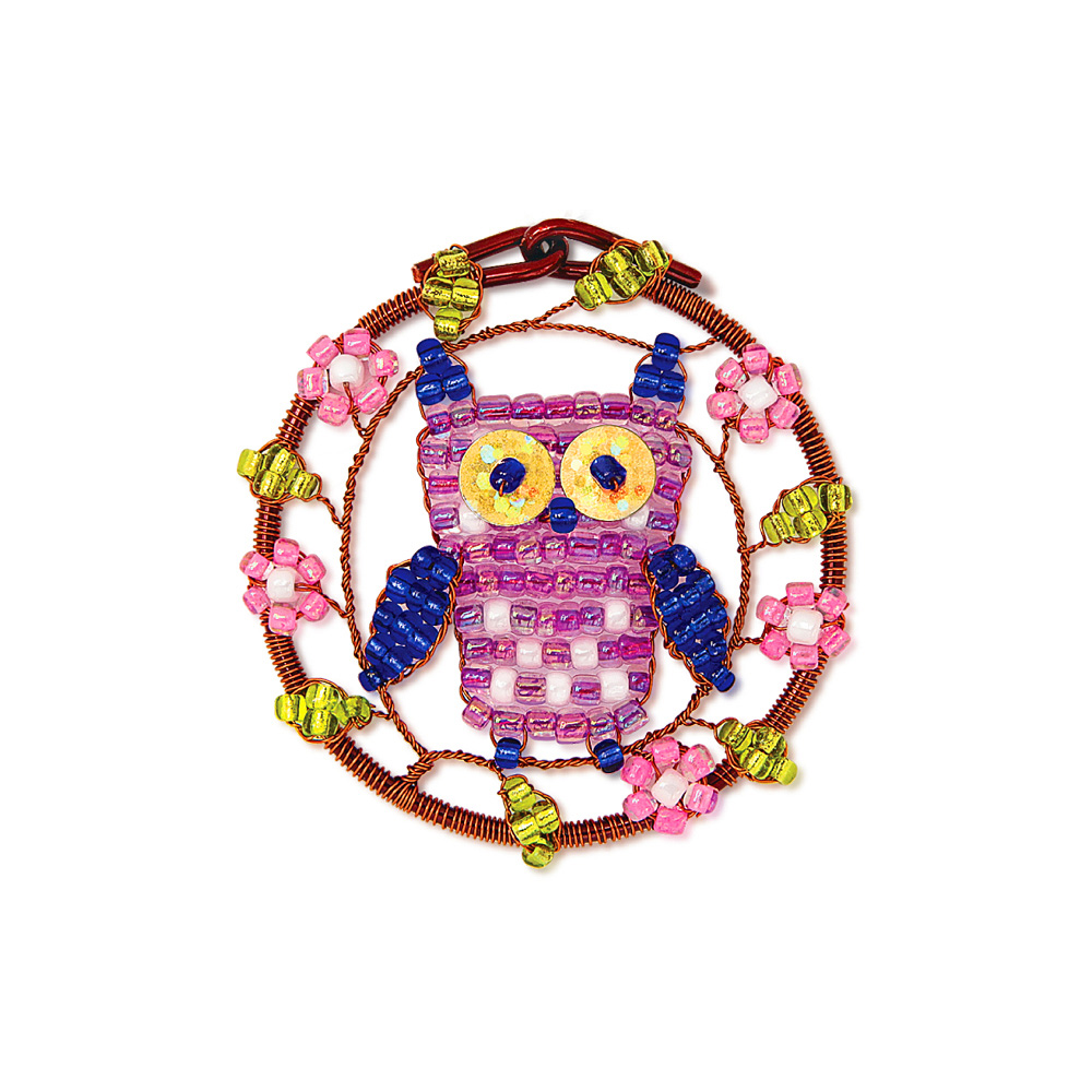 Серия изящных ювелирных кулонов в виде милых миниатюр: в круг из медной проволоки вплетается настоящая маленькая сюжетная сценка! Переливающийся бисер играет разными цветами и создаёт ощущение движения: трогательная сова поблескивает большими золотистыми глазами-пайетками. Изделие не сложное технически, нужно только немного терпения и усидчивости, получится украшение, которое можно носить или подарить.