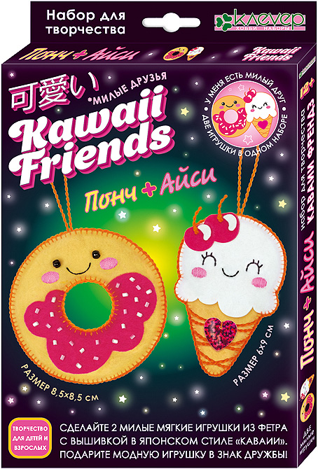 «Каваии-Френдз. КУКИ+ШЕЙК» - набор для изготовления двух мягких игрушек-мимими из цветного фетра с очаровательными мордашками.