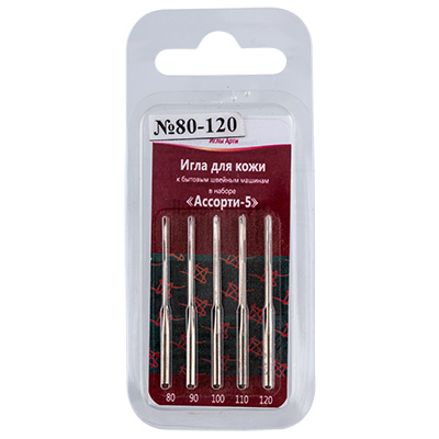 Иглы для бытовой швейной машины "АРТИ" Набор "Ассорти- 5" для кожи 5 шт в блистере №80-120