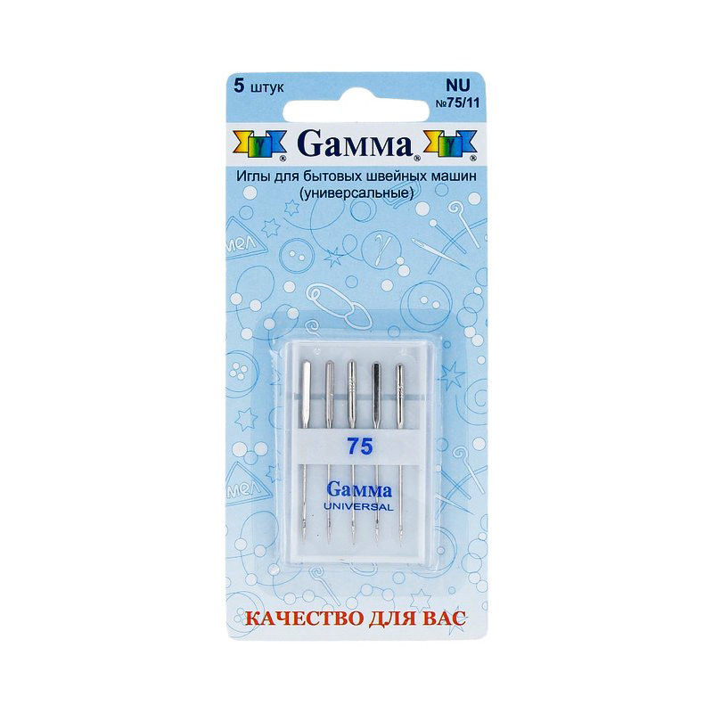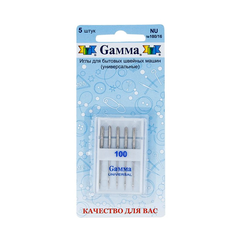 - Иглы для бытовой швейной машины "GAMMA" NU универсальные 5шт в блистере.