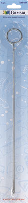Игла для вывертывания Gamma DW-001. Длинная металлическая игла с крючком и петлей предназначена для удобного выворачивания рулика из ткани при изготовлении бретелей, кулисок, поясов. Сшитый рулик надевается на стальную иглу, при этом ткань собирается так, чтобы крючок с зажимом вылез с противоположной стороны рулика. После этого зажим крючка захватывает и защемляет ткань рядом с краем. Таким образом, во время выворачивания ткань не может соскользнуть с иглы, и рулик из ткани легко выворачивается на лицевую сторону. В коробе 504 блистера