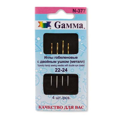 Иглы "GAMMA" N-377 гобеленовые №22-24 с двойным ушком 4 шт блистер острие закругленное