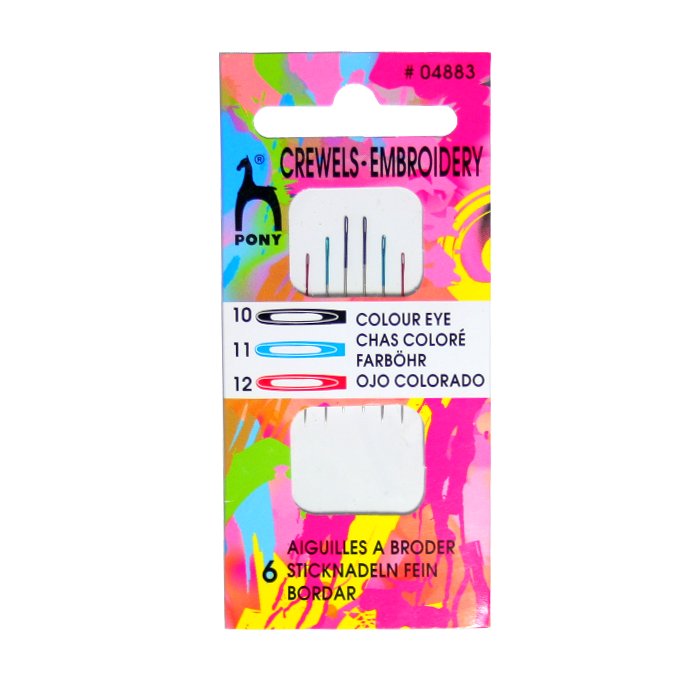 Иглы "PONY" 04883 для вышивания цветные, №10, 11, 12 6 шт