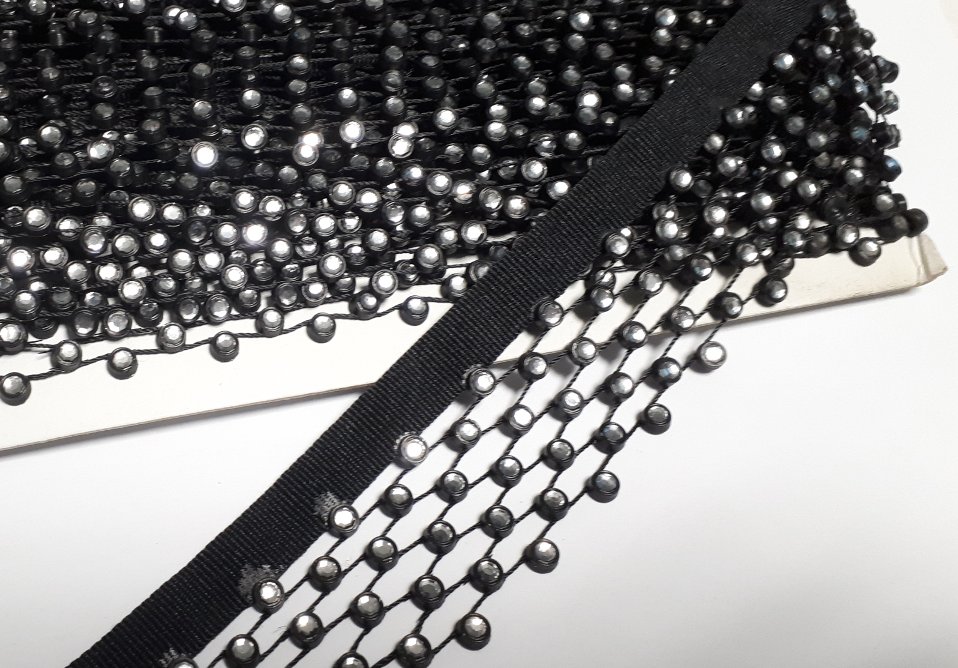 Тесьма со стразами "плетенка" S139-B 35мм 9.1м ЧЕРНЫЙ