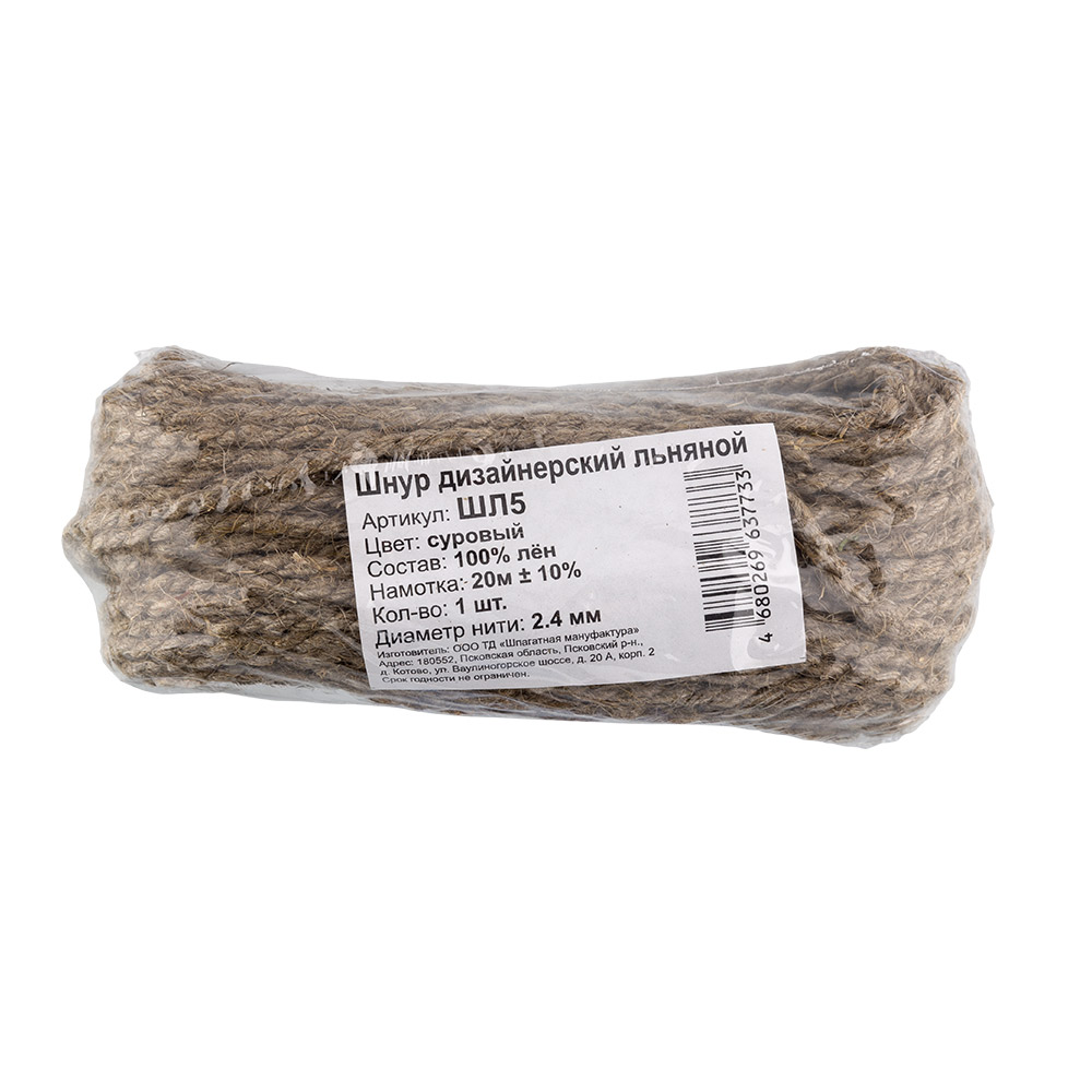 - Шпагат льняной ШЛ5 дизайнерский 100% лён 22 я 20 м ± 10 % суровый