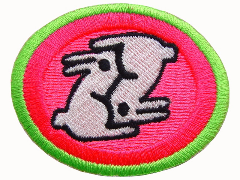 - Нашивка 02052140 "Розовые кролики с зеленым ободком" 5.7х4.5 см