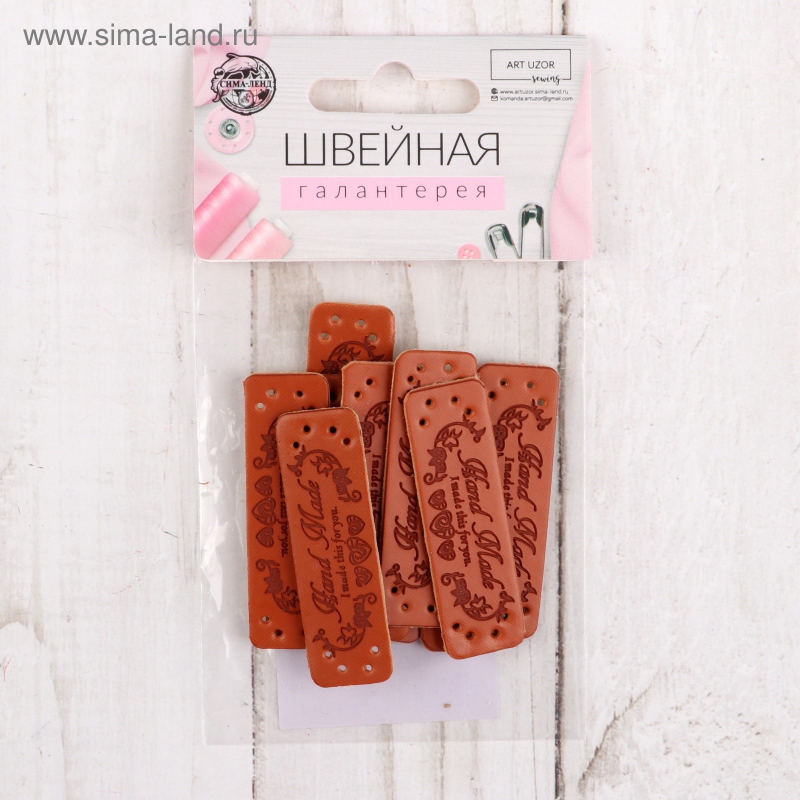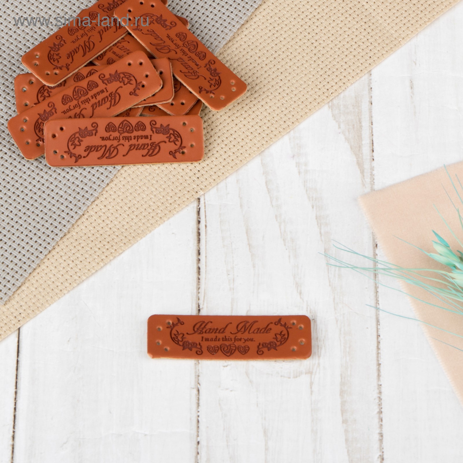- Набор нашивок из кожзам. «Hand made» 5 × 1,5 см 10 шт