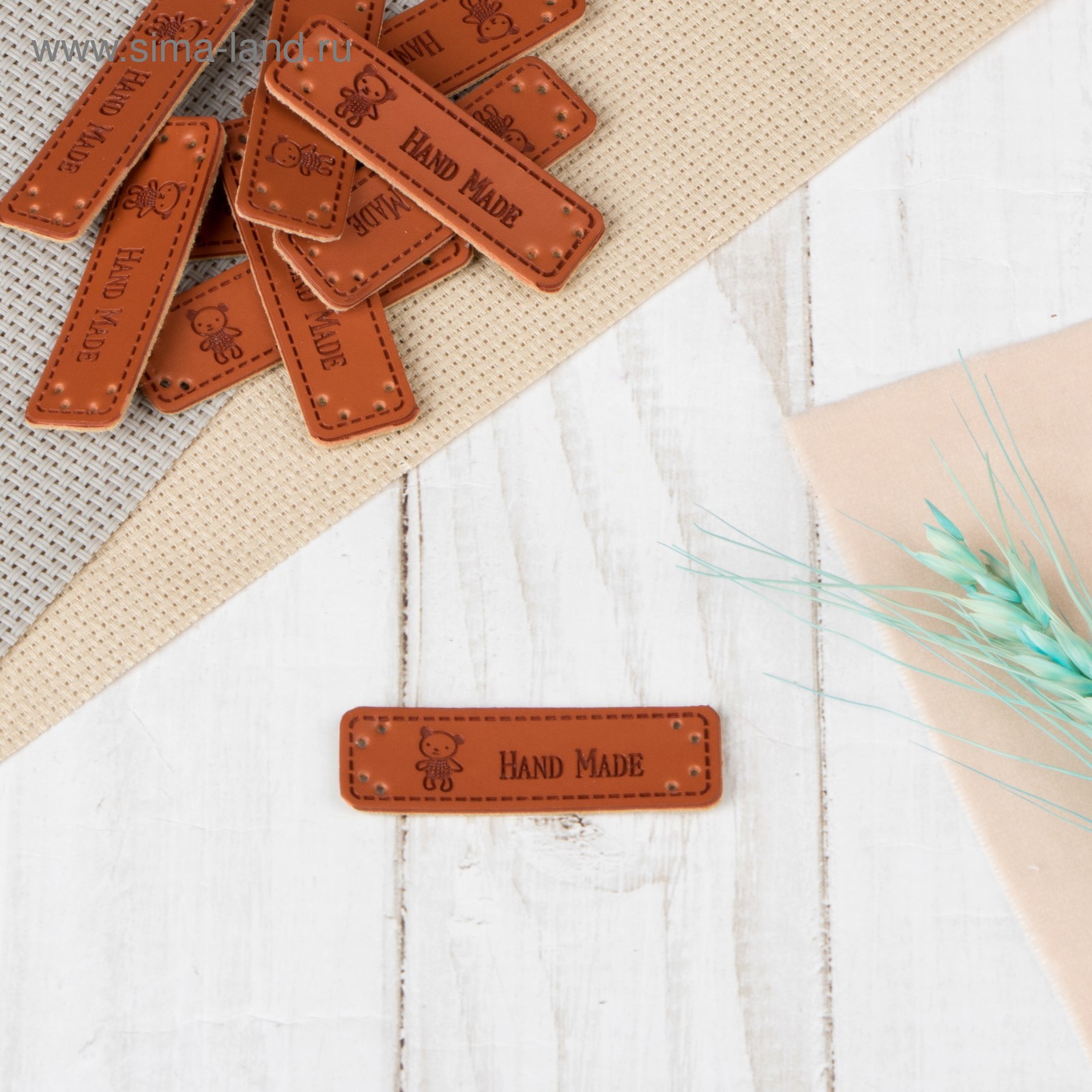 - Набор нашивок из кожзам. «Hand made» 5 × 1,5 см 10 шт