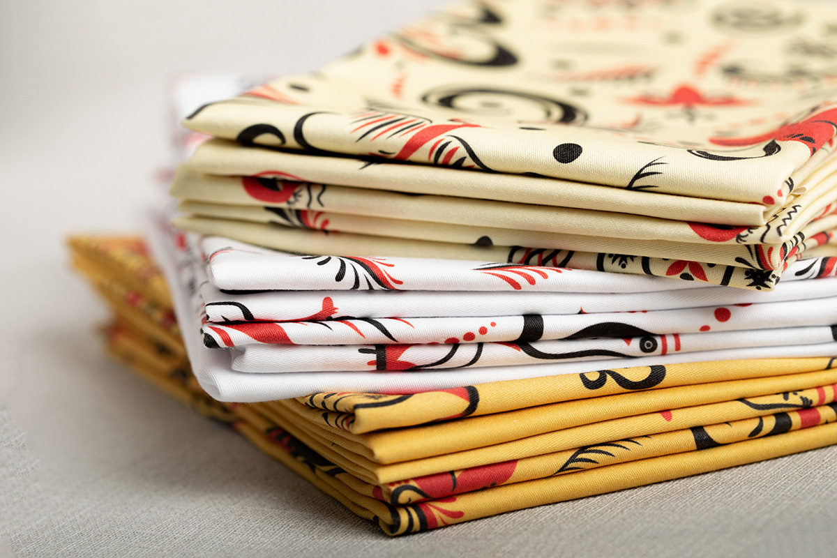Уникальные эксклюзивные дизайны тканей прекрасно подойдут для изготовления одеял, покрывал, сумок, аппликаций, панно в технике пэчворк; для пошива игрушек, текстильных кукол; для работы в технике скрапбукинг и различных декоративных работ. Интересный принт в стиле русской Мезенской росписи внесет изюминку в Вашу работу и поможет создать уют в Вашем доме.
