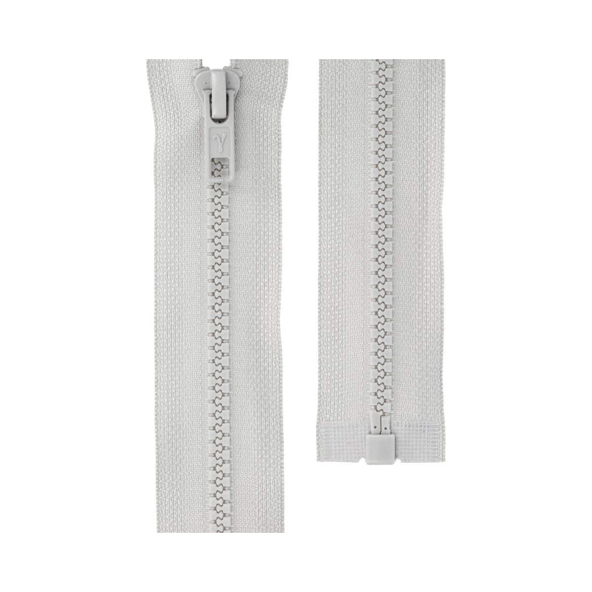 Разъемная молния G3051 с тканевой заделкой низа. Отличается легким движением замка по ленте и повышенной морозостойкостью. Испытания показали, что упругость и устойчивость к ударным нагрузкам сохраняются при температуре до -60° С. Это наиболее надежный и износостойкий тип молнии. Молния такого типа чаще всего используются при пошиве верхней одежды. Температура при глажении 100-150° С.