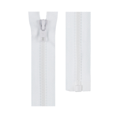 Разъемная молния G3081 с узким звеном и тканевой заделкой низа. Отличается легким движением замка по ленте и повышенной морозостойкостью. Используется, как правило, для верхней одежды. Испытания показали, что упругость и устойчивость к ударным нагрузкам сохраняются при температуре до -60° С. Рекомендуемая температура при глажении 100-150° С.