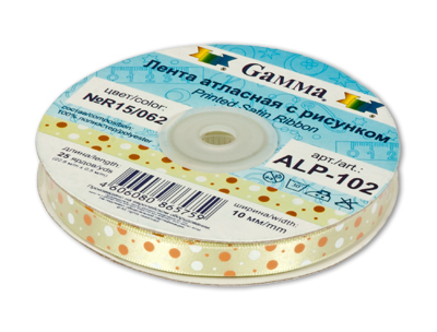 Лента атласная 10мм (3/8") 22.8м ±0.5м с рисунком ALP-102 "GAMMA"