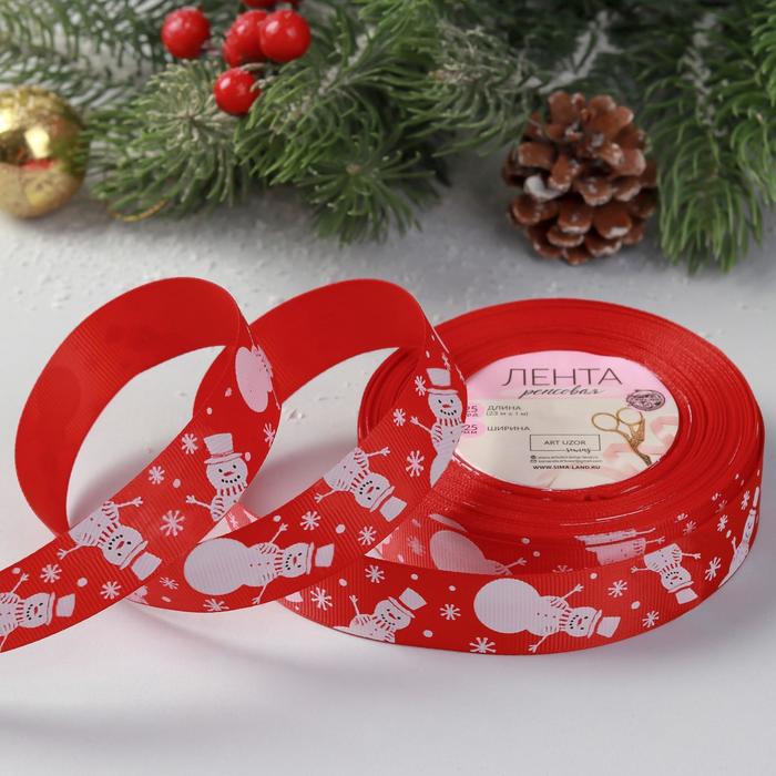 Лента репсовая 25мм 23 ± 1м «Снеговик» красный №026