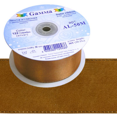 - Лента атласная 50мм (2") 33м ±2м двухстор. с металл. нитью AL-50M "GAMMA"