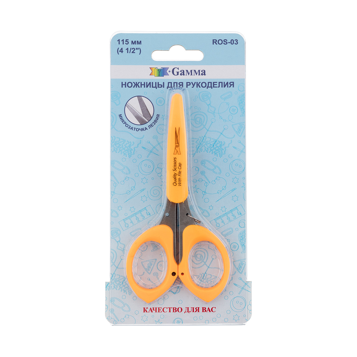 Ножницы "Gamma" ROS-03 для рукоделия в блистере 115 мм оранжевые