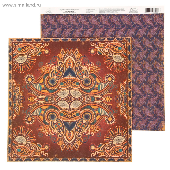 - Бумага для скрапбукинга Восточные сказки "Орнамент" 29.5 х 29.5 см 180 г/м 2шт