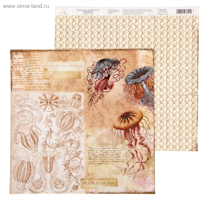 - Бумага для скрапбукинга Одиссея "Медузы" 29.5 х 29.5 см 180 г/м 2шт