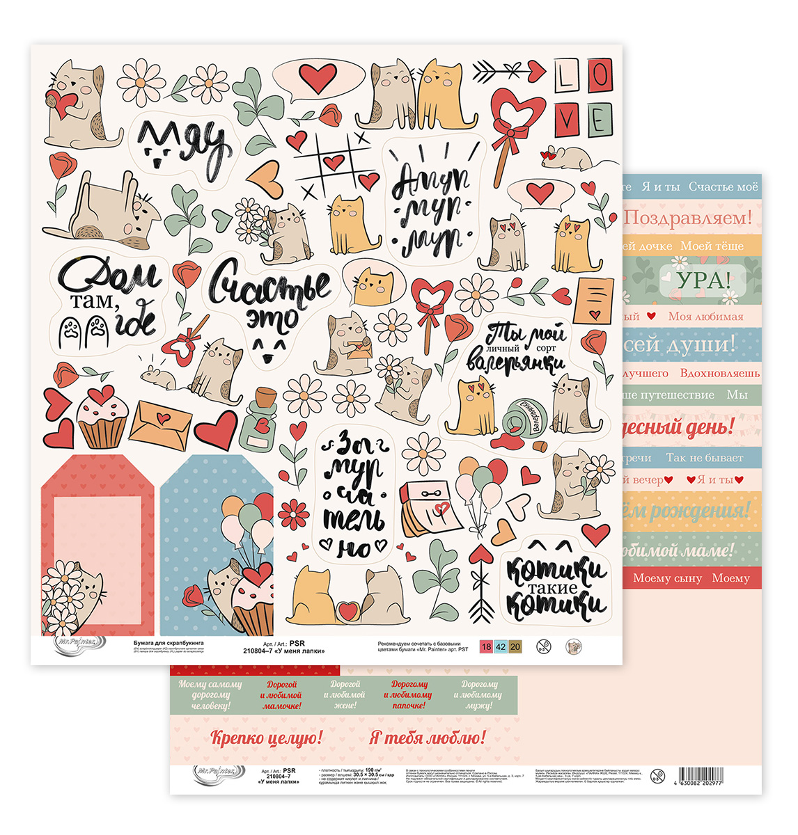 Бумага для скрапбукинга "Mr.Painter" PSR 210804 "У меня лапки" 190 г/кв.м 30.5 x 30.5 см