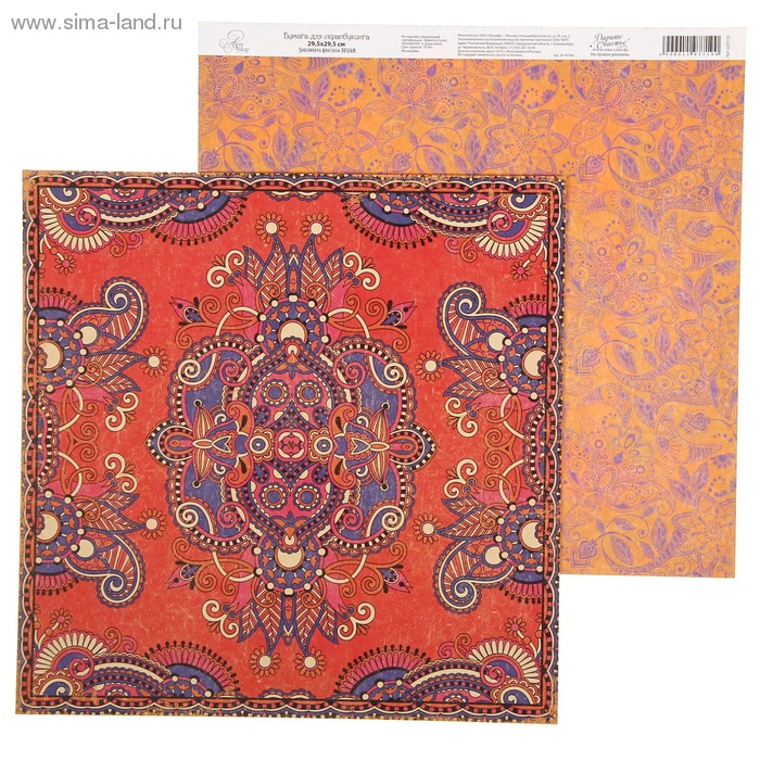 - Бумага для скрапбукинга Восточные сказки "Персидский ковер" 29.5 х 29.5 см 180 г/м 2шт