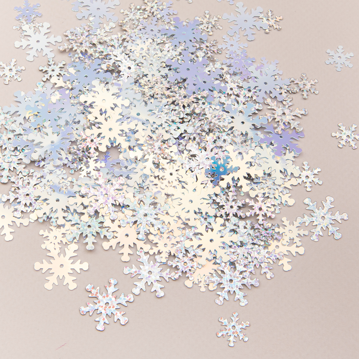 Декоративные плоские пайетки Zlatka для рукоделия и творчества. Фигурные, выполнены в форме снежинок, двусторонние, с отверстием для нити в центре. Используются для украшения предметов в зимней, новогодней и рождественской тематиках. Помогут создать праздничное настроение.