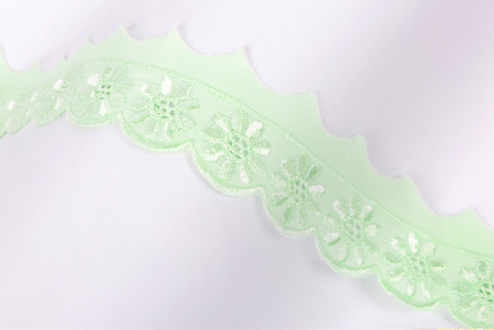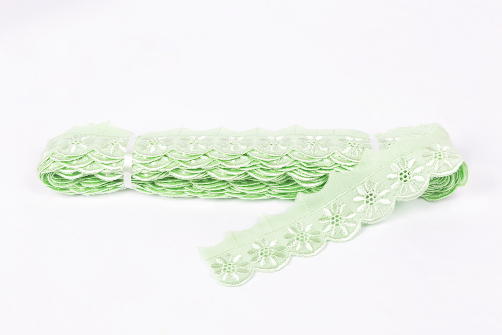 Шитье кружево - это вид декоративной тесьмы с прорезанными отверстиями и вышитыми ажурными узорами. Применяется для украшения одежды, отделки постельного белья, занавесок, полотенец, скатертей. В упаковке: 8.8 метров
