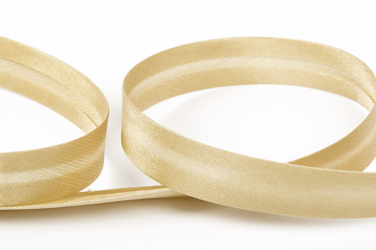 Полиэстеровая тесьма, выкроенная по косой, с заранее подогнутыми припусками.