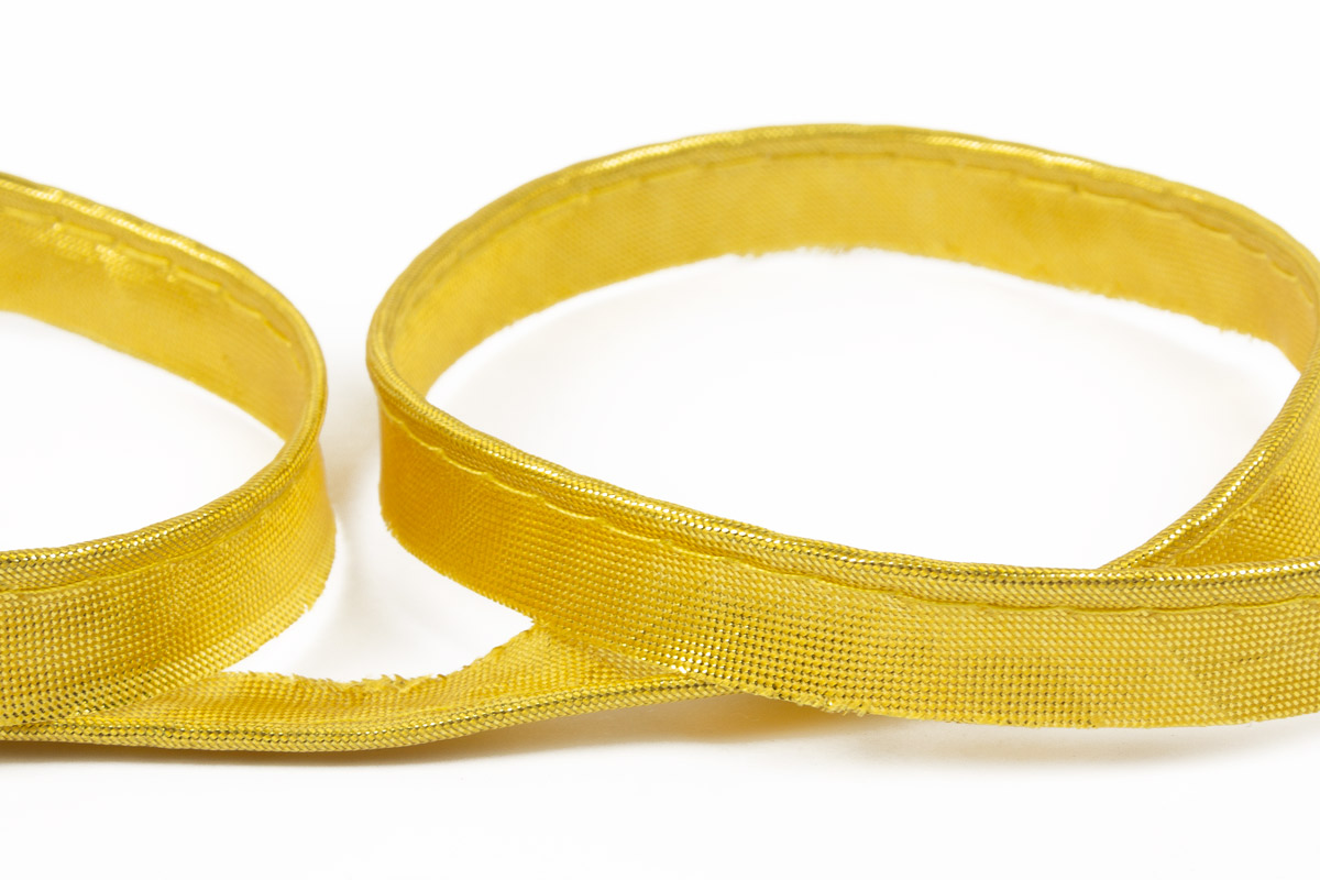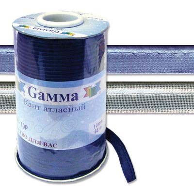 Кант атласный металлизированный со шнуром. Представляет собой ленту из ткани, сложенная пополам, с вшитым руликом толщиной 1.5 мм. Используется для отделки швов и краев одежды, штор, подушек и постельного белья. Допустимое расхождение в оттенке цвета 5%.