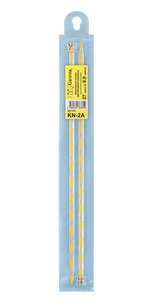 - "GAMMA" Спицы прямые KN-2A акрил d 6.0 мм 27 см желтый