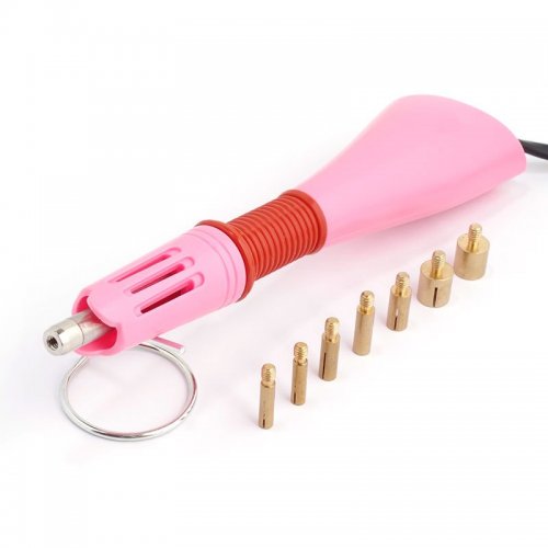 Аппликатор (паяльник) для страз позволит усовершенствовать вашу работу, где требуется приклеить стразы или выложить из них узоры даже в труднодоступных местах – за считанные секунды термостразы будут сверкать на различных изделиях, таких как: одежда и обувь, кошельки и сумки, аксессуары и игрушки, фотоальбомы и открытки. Паяльник для страз можно использовать при работе с материалами, которые хорошо контактируют с клеем: бумага, кожа, замша, хлопок, лен, шерсть, вискоза, деним, бархат, трикотаж, полиэстер. У паяльника есть переключатель включения/выключения с индикатором, ручка с удобным захватом, подставка и удлиненный шнур, а быстрый нагрев и 7 разных насадок в комплекте размером от 2 до 9 мм делают работу более комфортной и эффективной. Принцип работы: прикладываем страз на место расположения и слегка прижимаем его сверху наконечником уже нагретого паяльника. Под действием тепла страз нагревается, клей на его основании плавится и припаивается к ткани.