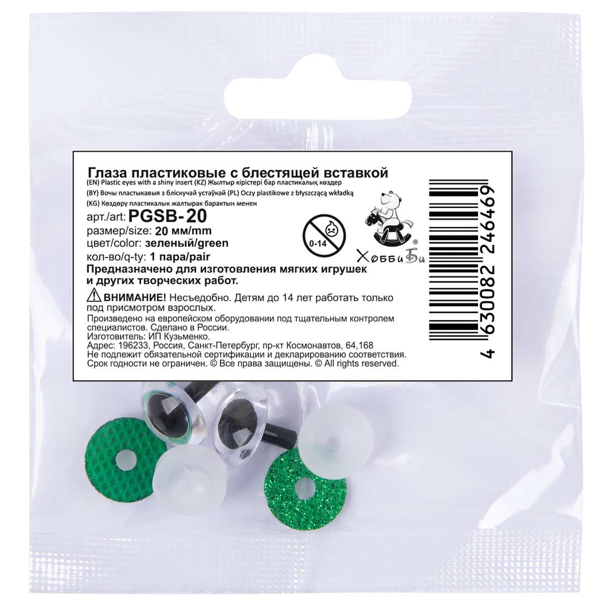 - "HobbyBe" PGSB-20 Глаза пластиковые с блестящей вставкой d 20 мм 2 шт