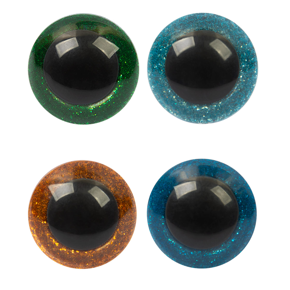 Глаза пластиковые с блестящей вставкой ТМ "HobbyBe" арт. PGSB-20. Прозрачные глаза, в комплекте с фиксаторами и блестящими вставками отлично подойдут для изготовления игрушек в различных техниках.
