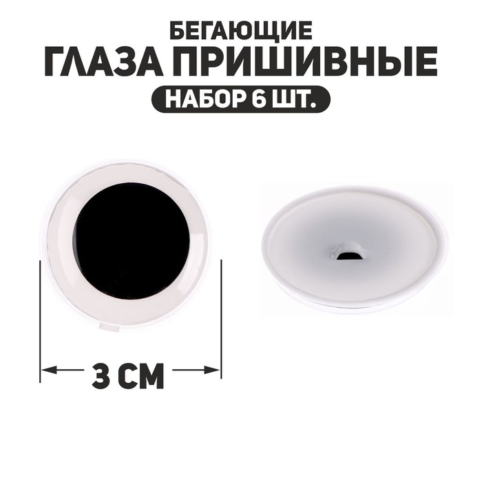 Глаза пришивные «Бегающие» d 30 мм 6 шт черно-белые