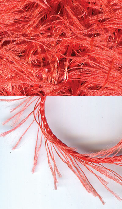 Пряжа типа "травка" равномерной толщины. Длина ворса 2 см. Уход за готовым изделием: ручная стирка t-30, не гладить, щадящий режим химчистки, не отбеливать, не сушить в барабанной сушилке. Рекомендуемый диаметр спиц для пряжи 5.5-6 мм. На вязаном изделии размером 10х10 см получается 22 рядов по 15 петель.