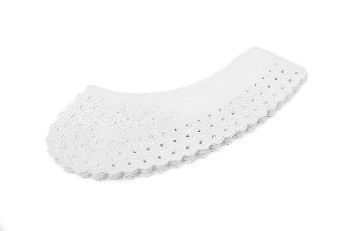 Воротник имеет хлопковую основу. На ней выбивается рисунок полиэстровыми нитками. Вышивка придает воротнику особый изыск, индивидуальность.