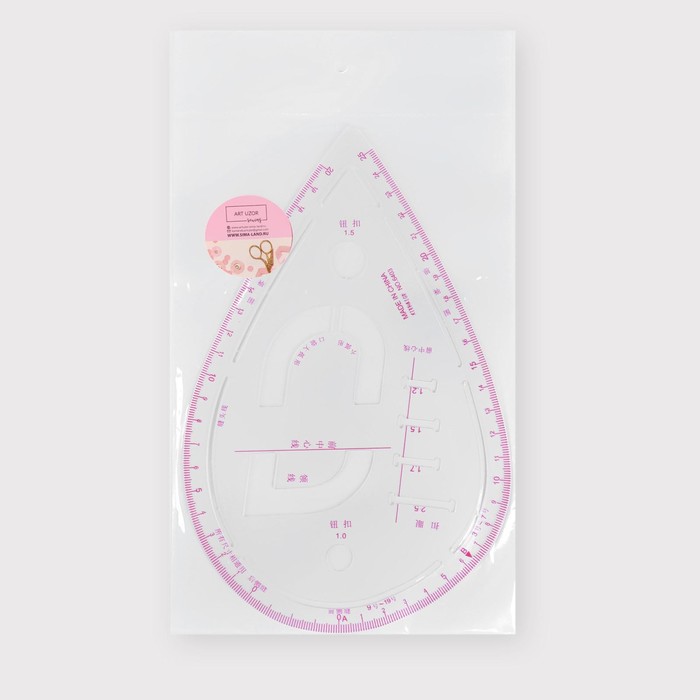 - Лекало метрическое «Капля» с проймой 20,5 × 13,3 см 0,5 мм прозрачный