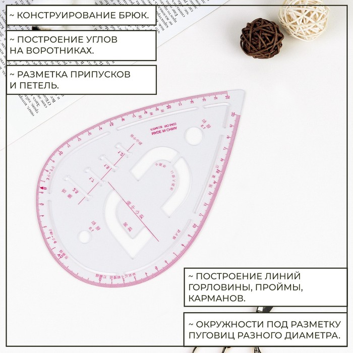Лекало метрическое «Капля» с проймой 20,5 × 13,3 см 0,5 мм прозрачный 1847950