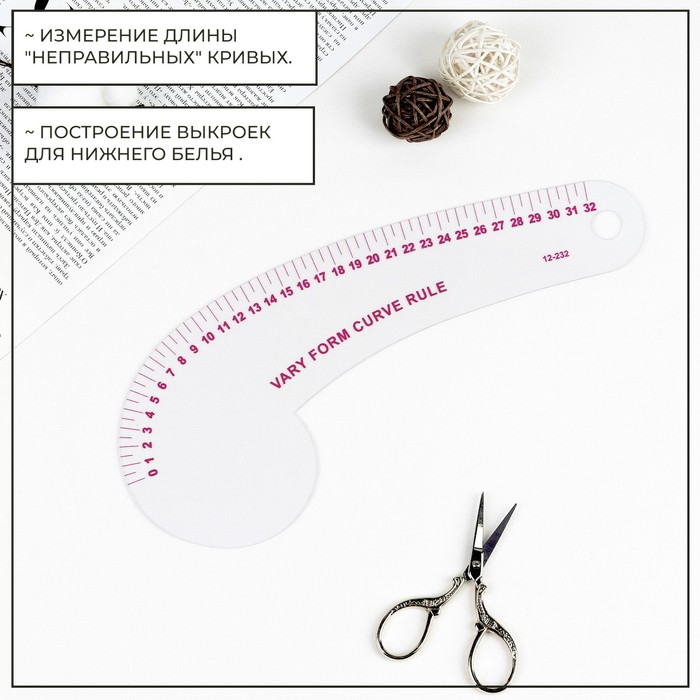 - Лекало метрическое фигурное 30,5 × 11,5 см 0,5 мм прозрачный