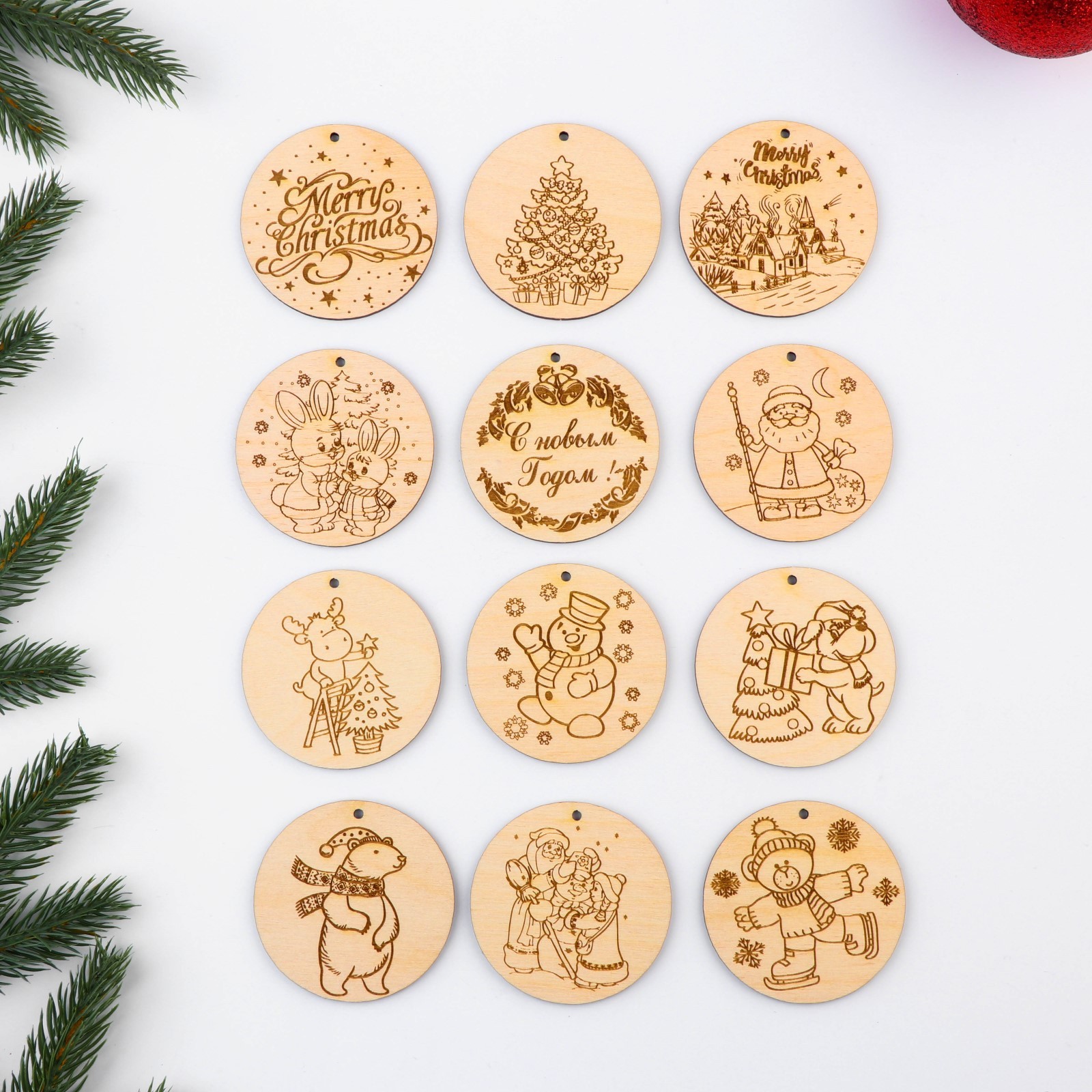 - Набор для творчества новогодний "Круги с гравировкой" 12 шт