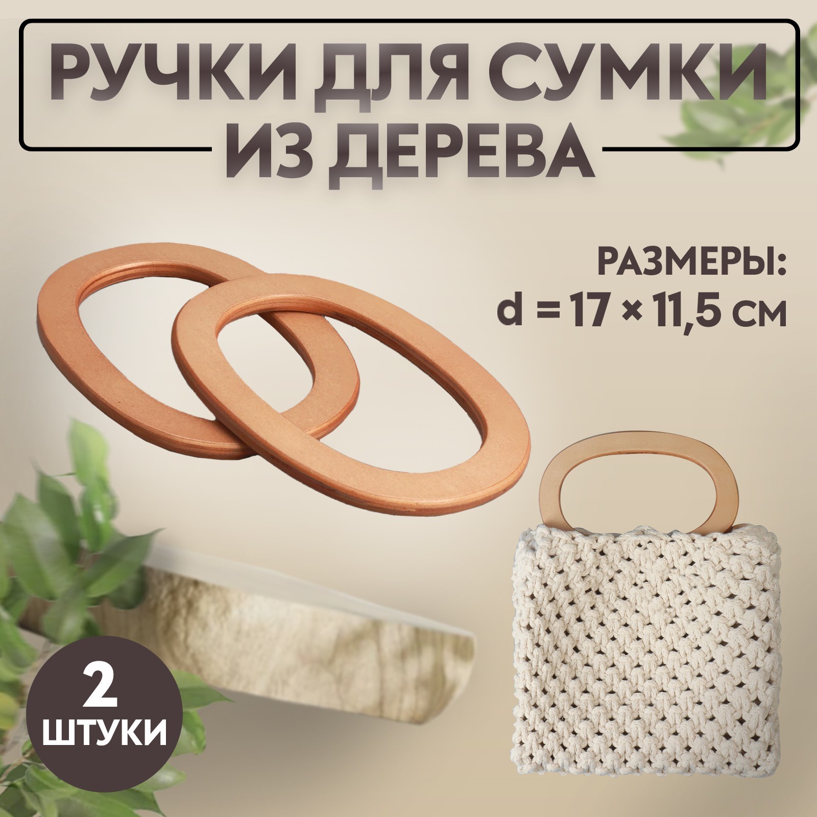 Ручки для сумок дерево d 13 × 7,5 / 17 × 11,5 см 2 шт бежевый