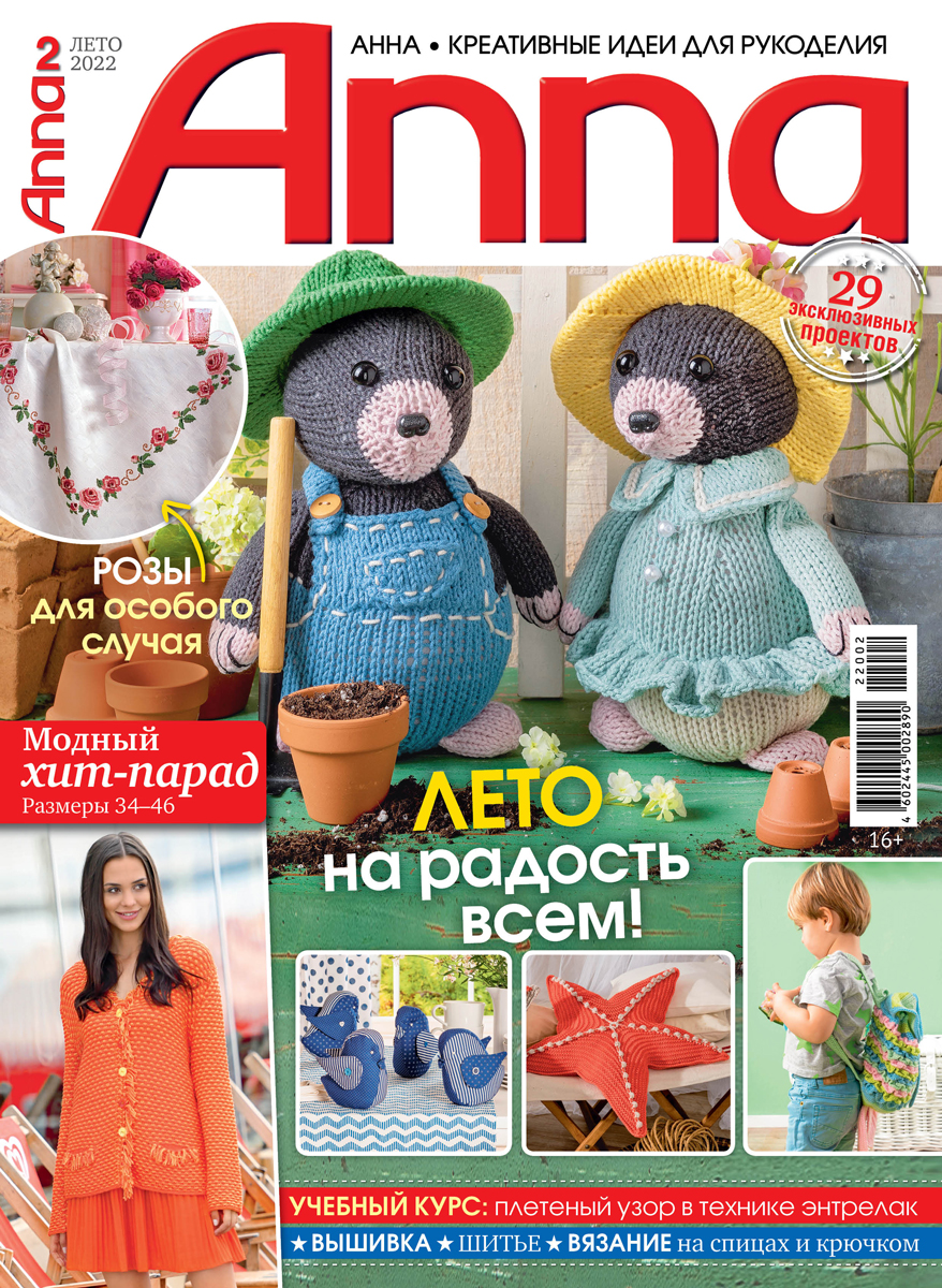 Популярный журнал по рукоделию – Anna, специальный выпуск издания “Все для женщины”. В каждом номере журнала собраны уникальные проекты, выполненные в разных техниках – вязание крючком, спицами, вышивка, украшения из бисера, пэчворк и другие. На страницах журнала вы найдете много красивых и оригинальных проектов, всевозможные идеи по созданию поделок и аксессуаров для дома, элементов декора. Вы сможете создать великолепные подарки для ваших близких и друзей, украсить ваш дом неповторимым эксклюзивом.