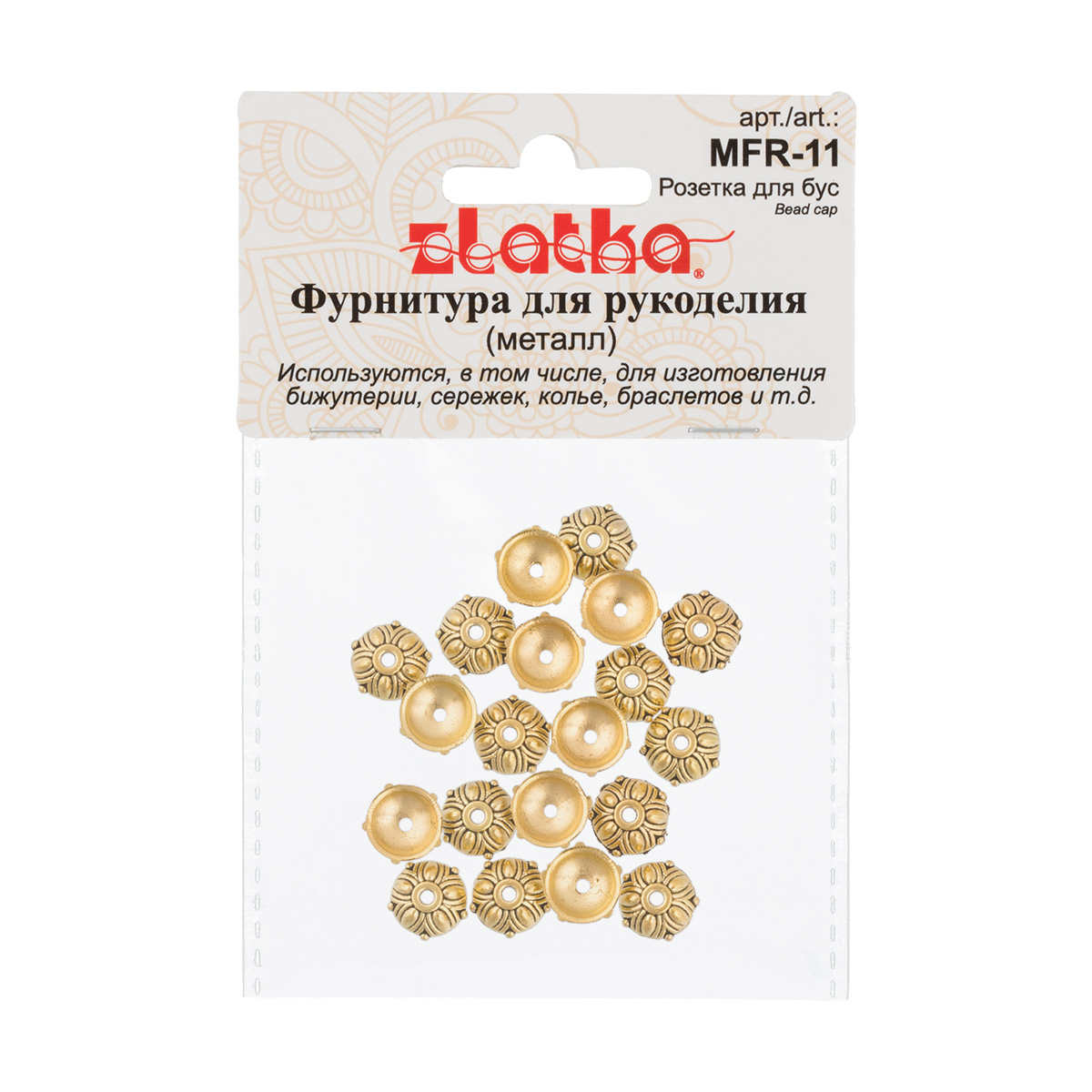 Розетка для бус "Zlatka" MFR-11 служат для декоративного обрамления бусин. Они предотвращают истирание покрытия бусин в месте их соприкосновения друг с другом и продлевают срок службы украшения.