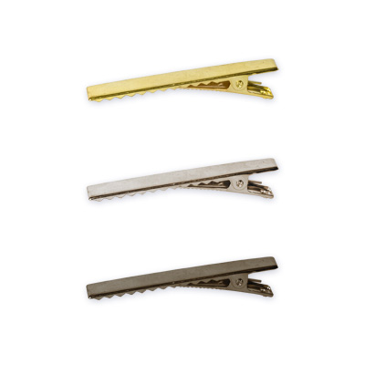 Металлическая заготовка - прищепка для заколок . Крепление различных декоративных элементов и дополнительных оснований может осуществляться при помощи клея. В качестве декора могут быть использованы бисер, бусины, полимерная глина, лента, стразы и другие элементы.