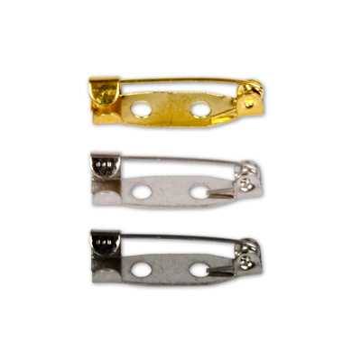 Металлическая заготовка для броши размером 2 см, имеет два отверстия в основании и поворачивающийся фиксатор иглы. Крепление различных декоративных элементов и дополнительных оснований может осуществляться при помощи клея или специальных отверстий. В качестве декора могут быть использованы бисер, бусины, полимерная глина, лента, стразы и другие элементы.