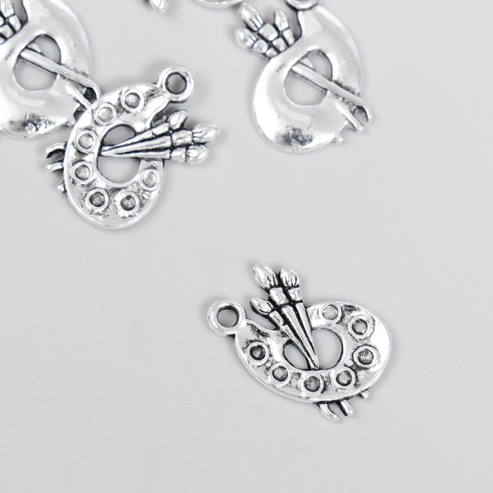 Подвеска металл "Палитра с кистями" под серебро 1,7х1,2 см 10 шт "Атекс" г. Пермь