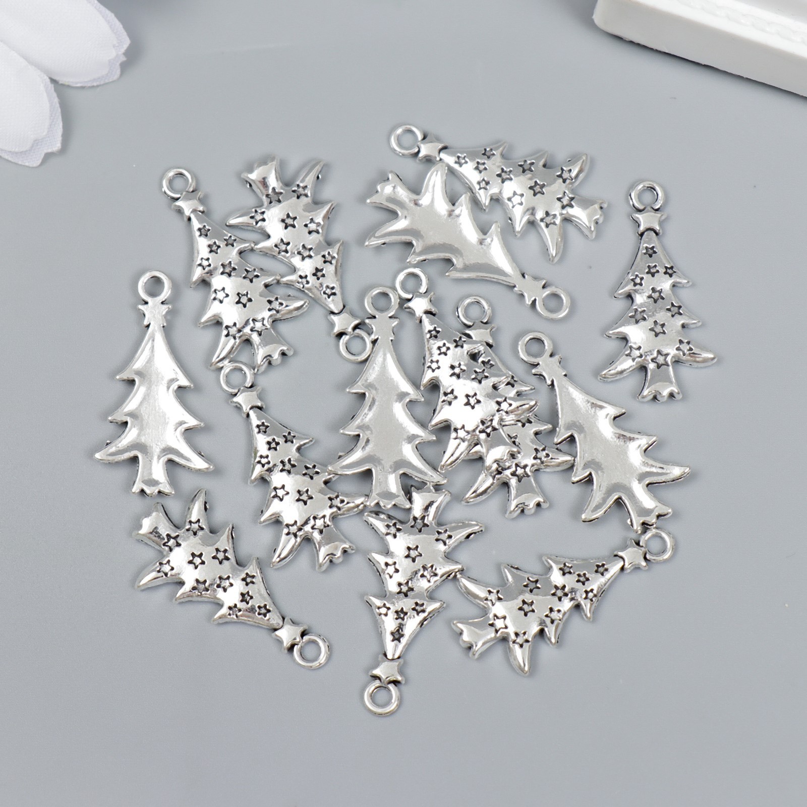 - Подвеска металл "Ёлочка-завитки" серебро 2,3х1,4 см 15 шт